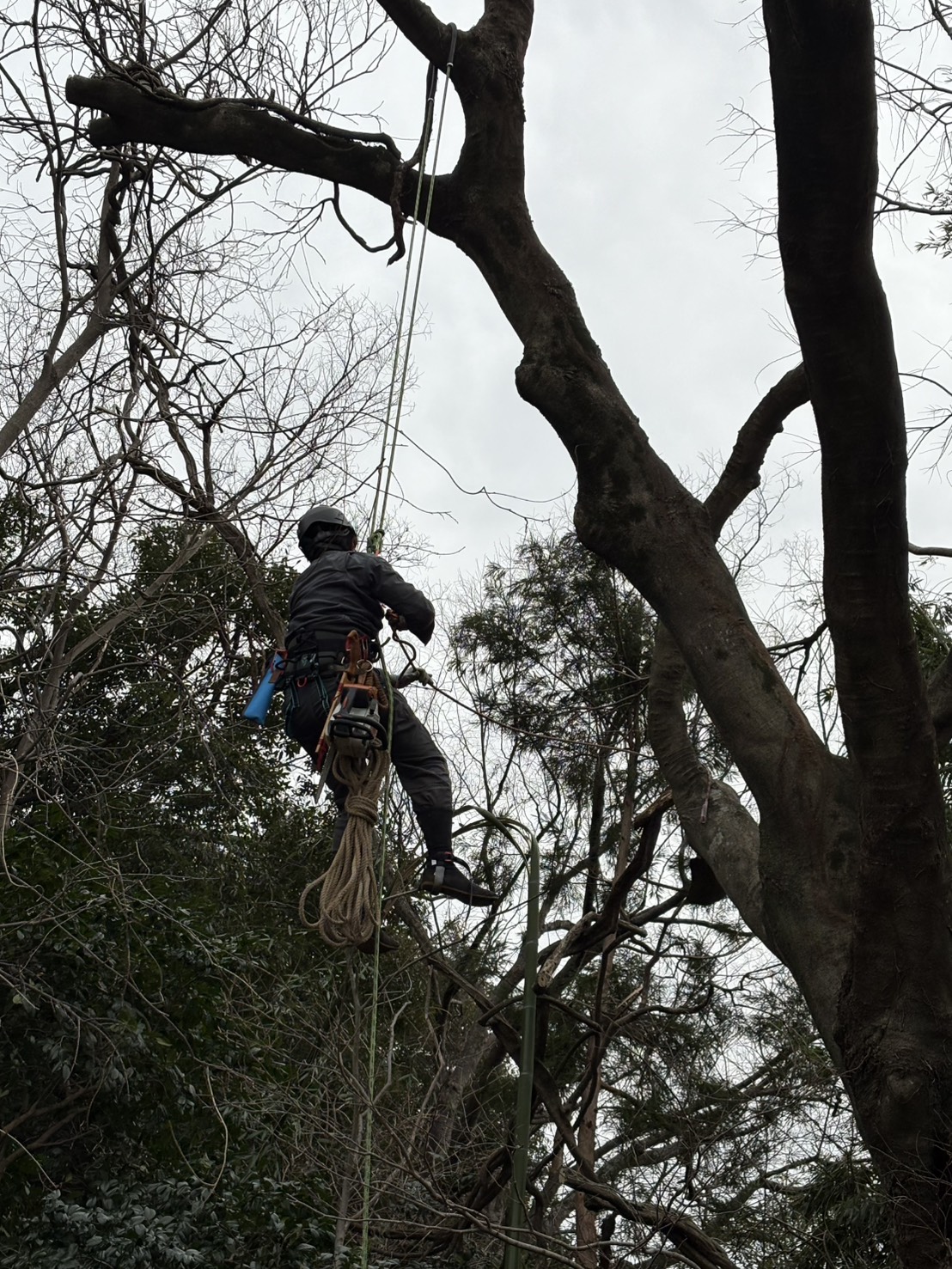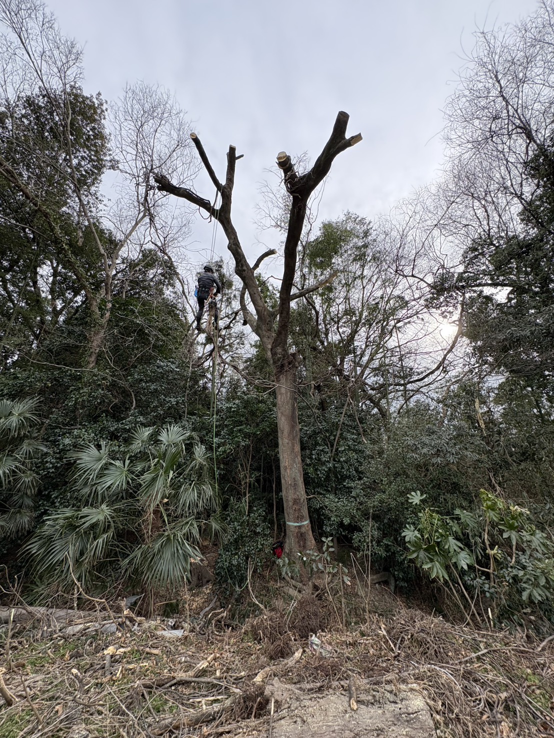 また、高所作業車を搬入できなかった為ロープクライミング技術を使用しての伐採となりました🪚